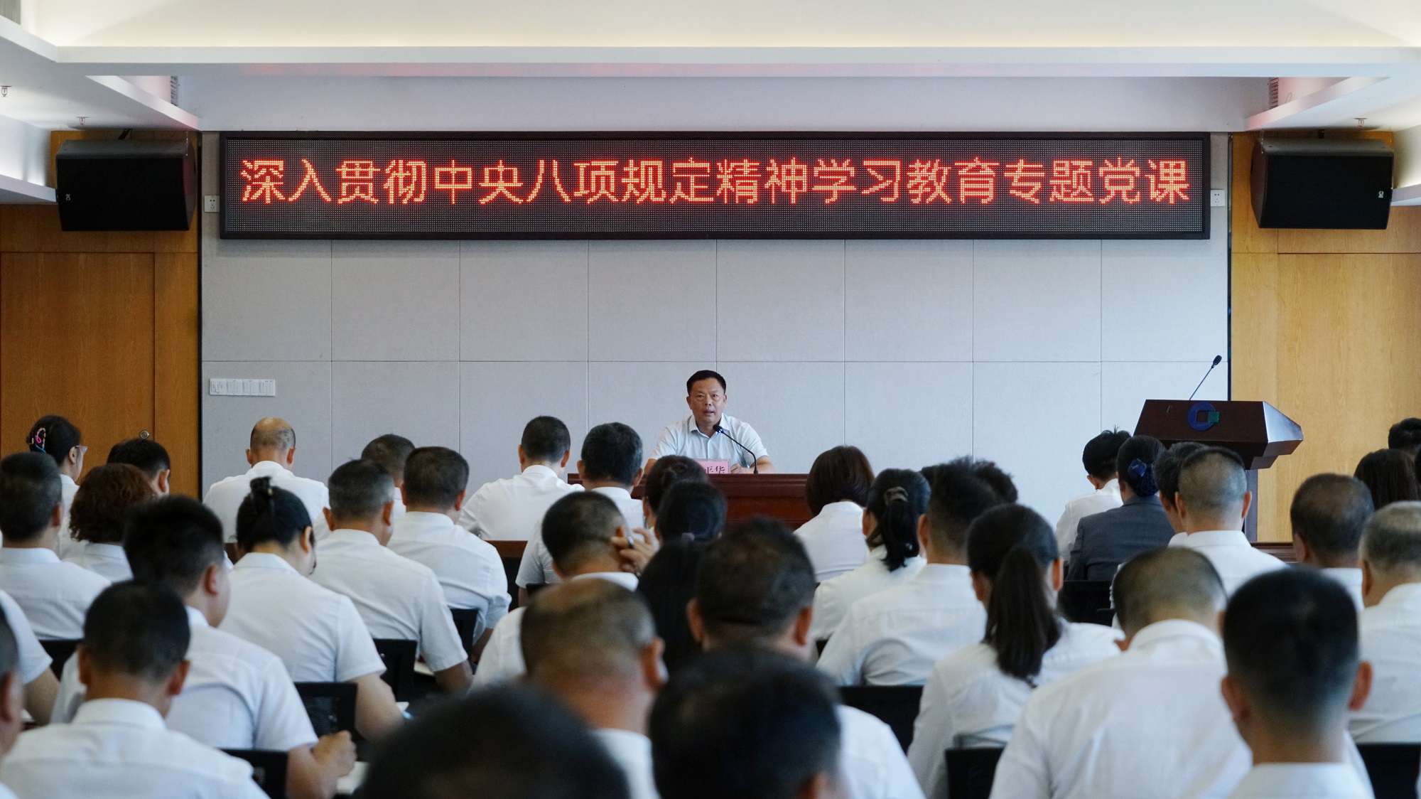 為扎實(shí)開展深入貫徹中央八項規(guī)定精神學(xué)習(xí)教育,進(jìn)一步提升黨員干部紀(jì)律意識,強(qiáng)化作風(fēng)建設(shè),2025 年 6 月 25 日下午,市國資委黨委書記、主任蔣平華為集團(tuán)全體黨員及中層以上管理干部授課。