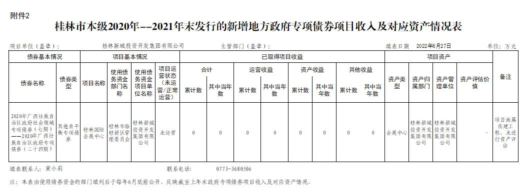 桂林新城投資開發(fā)集團有限公司關(guān)于2020年-2021年發(fā)行的新增政府債券使用和管理情況