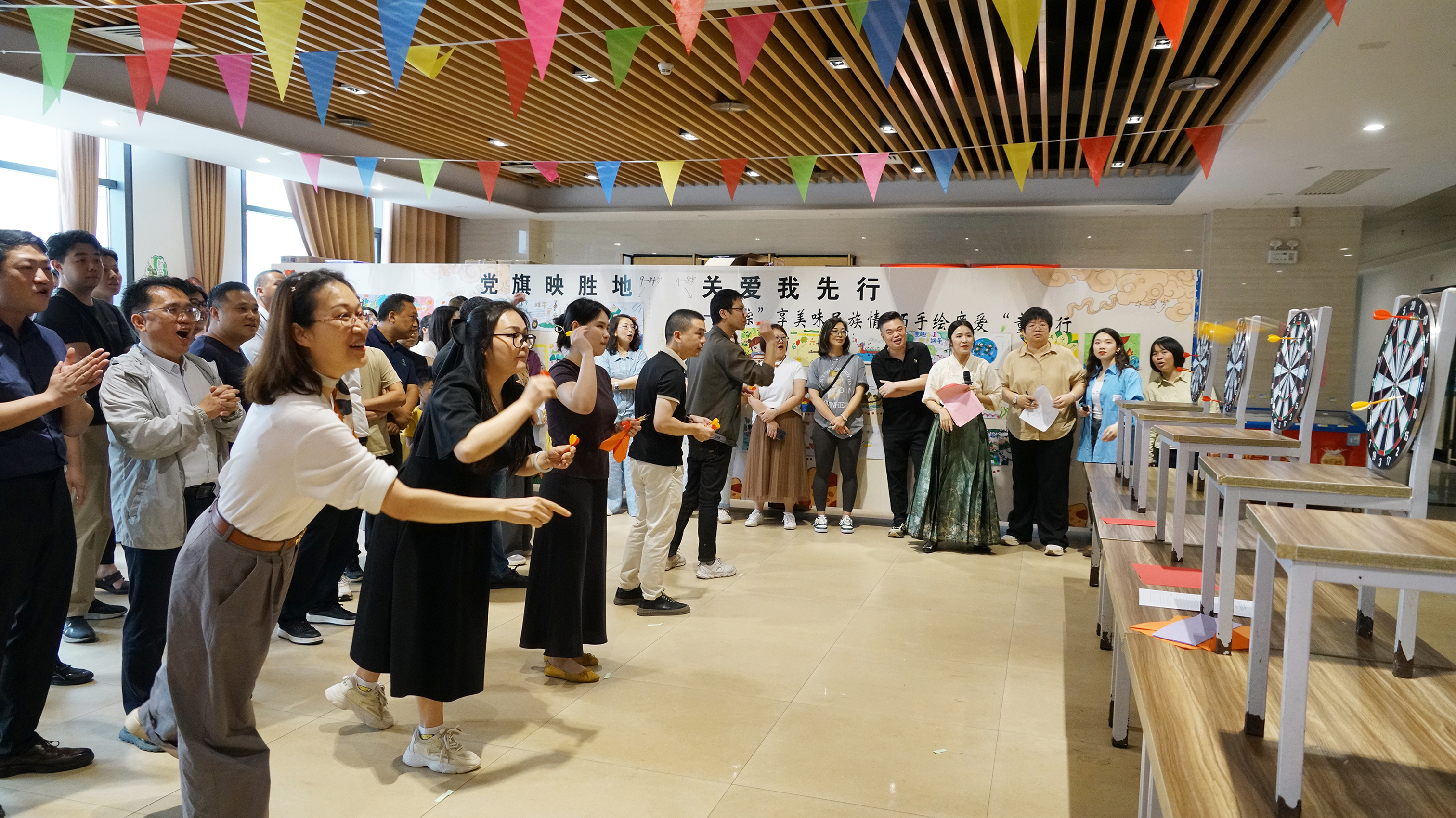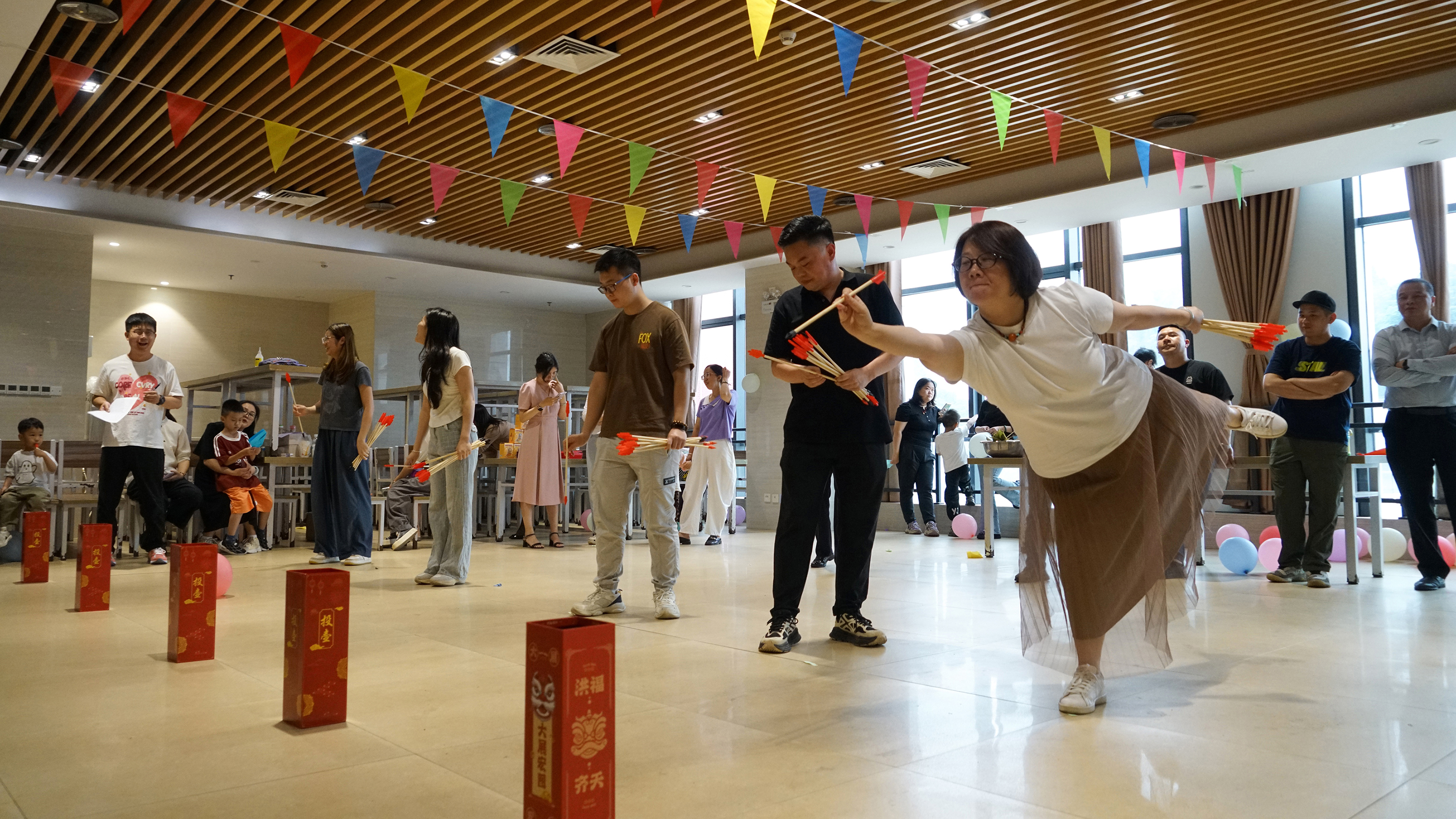 “家企同行·國風非遺——民族文創(chuàng),與‘粽’不‘童’”趣味游戲挑戰(zhàn)環(huán)節(jié),將活動氛圍推向高潮。童年紙飛機、端午射五毒、趣味投壺三大趣味游戲讓職工與孩子都沉浸其中。在童年紙飛機游戲中,為了能讓紙飛機飛得更遠、更久,大家興致勃勃地嘗試著各種折法,隨后用力一擲,紙飛機在空中劃出一道道優(yōu)美的弧線,有的飛得又高又遠,有的則在空中翻轉(zhuǎn)幾圈后穩(wěn)穩(wěn)落地,看著自己折的紙飛機歡呼雀躍,仿佛回到了無憂無慮的童年時光。端午射五毒游戲則充滿了傳統(tǒng)韻味,大家手持飛鏢,瞄準靶心,每當有人射中五毒圖案,周圍就會響起一陣歡呼聲,大家在歡聲笑語中感受著端午節(jié)的傳統(tǒng)習俗。趣味投壺游戲更是熱鬧非凡,參與者們瞄準壺口,或站或蹲,調(diào)整著姿勢和力度,隨著一次次投中,現(xiàn)場的氣氛也一次次被點燃,歡呼聲、加油聲此起彼伏。歡聲笑語回蕩在整個活動現(xiàn)場。各組成員在比賽中相互配合、相互鼓勵,展現(xiàn)了團隊合作的力量。最終,根據(jù)各組獲得的總分,評選出冠軍組,大家在歡樂中感受到了團隊的溫暖與力量。